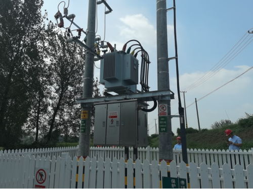 雙豐河電排站配電變壓器采用我公司生產(chǎn)的型號(hào)為:SZ13-M.ZT-400(125)/10有載自動(dòng)調(diào)容調(diào)壓變壓器,該變壓器能根據(jù)負(fù)荷大小自動(dòng)調(diào)節(jié)容量,使變壓器容量根據(jù)需要自動(dòng)在125kVA和400kVA兩個(gè)檔位進(jìn)行切換;同時(shí)結(jié)合線路電壓參數(shù),及時(shí)五檔調(diào)節(jié)線路電壓,確保線路電壓合格率。