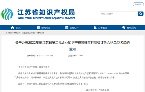 2022年9月30日,江蘇省知識(shí)產(chǎn)權(quán)局來(lái)公司進(jìn)行知識(shí)產(chǎn)權(quán)貫標(biāo)績(jī)效評(píng)價(jià)工作進(jìn)行驗(yàn)收。近日,江蘇省知識(shí)產(chǎn)權(quán)局下發(fā)了《關(guān)于公布2022年江蘇省第二批知識(shí)產(chǎn)權(quán)管理貫標(biāo)績(jī)效評(píng)價(jià)合格單位的通知》,揚(yáng)州北辰電氣集團(tuán)名列其中。這次通過(guò)省知識(shí)產(chǎn)權(quán)局組織的企業(yè)知識(shí)產(chǎn)權(quán)管理貫標(biāo)績(jī)效評(píng)價(jià),既是對(duì)公司知識(shí)產(chǎn)權(quán)工作充分的肯定,更是對(duì)公司知識(shí)產(chǎn)權(quán)工作巨大的鞭策和鼓舞。