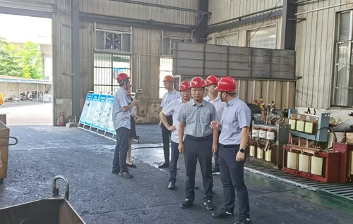在生產(chǎn)車間,丁斌董事長實地調(diào)研了廢舊電力物資拆解作業(yè)的開展情況,低壓成套電氣產(chǎn)品生產(chǎn)情況,對員工的工作環(huán)境和生產(chǎn)狀況進行了深入的了解。