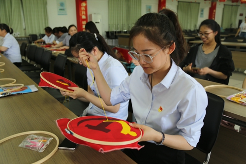 隨著絲線在女同志們的手中翻飛,活動(dòng)漸漸拉開了帷幕。只見她們熟練地使著針法,上下穿針引線,每一針都小心翼翼,每一個(gè)過程都精益求精,把對(duì)黨和祖國的熱愛化在針里、融入線中、繡在心里。一幅幅黨徽繡品表達(dá)職工們對(duì)黨的堅(jiān)定信仰和赤膽忠心。在繡黨徽間歇,黨員同志們還學(xué)習(xí)了中國共產(chǎn)黨黨史,回憶紅色經(jīng)典和黨的崢嶸歲月。