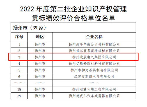 2022年9月30日,江蘇省知識(shí)產(chǎn)權(quán)局來(lái)公司進(jìn)行知識(shí)產(chǎn)權(quán)貫標(biāo)績(jī)效評(píng)價(jià)工作進(jìn)行驗(yàn)收。近日,江蘇省知識(shí)產(chǎn)權(quán)局下發(fā)了《關(guān)于公布2022年江蘇省第二批知識(shí)產(chǎn)權(quán)管理貫標(biāo)績(jī)效評(píng)價(jià)合格單位的通知》,揚(yáng)州北辰電氣集團(tuán)名列其中。這次通過(guò)省知識(shí)產(chǎn)權(quán)局組織的企業(yè)知識(shí)產(chǎn)權(quán)管理貫標(biāo)績(jī)效評(píng)價(jià),既是對(duì)公司知識(shí)產(chǎn)權(quán)工作充分的肯定,更是對(duì)公司知識(shí)產(chǎn)權(quán)工作巨大的鞭策和鼓舞。